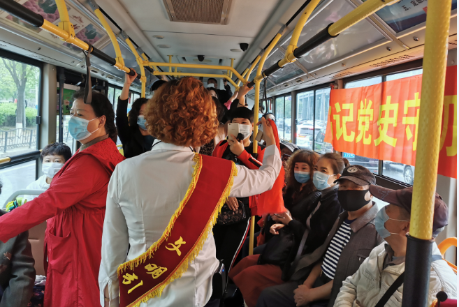 5月13日,216路公交車上,一堂生動(dòng)的 “流動(dòng)黨史課”在車廂內(nèi)進(jìn)行著,青年志愿者們身披綬帶,熱情演出。演講員講訴黨史故事《沂蒙山》,追尋革命先輩的光輝足跡,回顧和展現(xiàn)中華民族偉大復(fù)興中國(guó)夢(mèng)的奮斗歷程;宣傳員快板表演《我是企業(yè)宣傳員》,用節(jié)奏鮮明的語(yǔ)言介紹公交車的發(fā)展脈絡(luò),從公交變化看時(shí)代進(jìn)步,從駕駛員優(yōu)質(zhì)服務(wù)和乘客文明乘車的視角講述和諧美麗大鞍山。