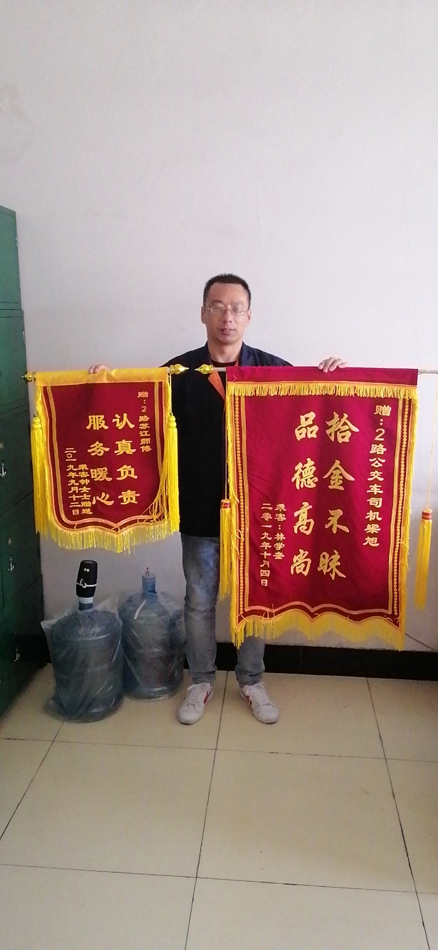 | 10月2日,乘客鐘女士到公交2路線師范學院調(diào)度室將寫有“認真負責、服務暖心”的錦旗贈與駕駛員蘇江師傅。9月12日上午,鐘女士帶孩子從師范學院乘坐2路車去站前火車站,在乘車過程中鐘女士的乘車卡由孩子拿在手中玩耍,下車時孩子卻將乘車卡塞進后門兩個玻璃的夾縫中,一時 |
